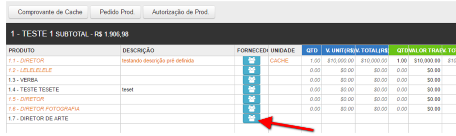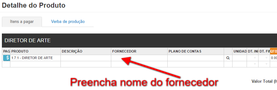 Clique no icone Fornecedores para preencher o nome e valor do fornecedor: