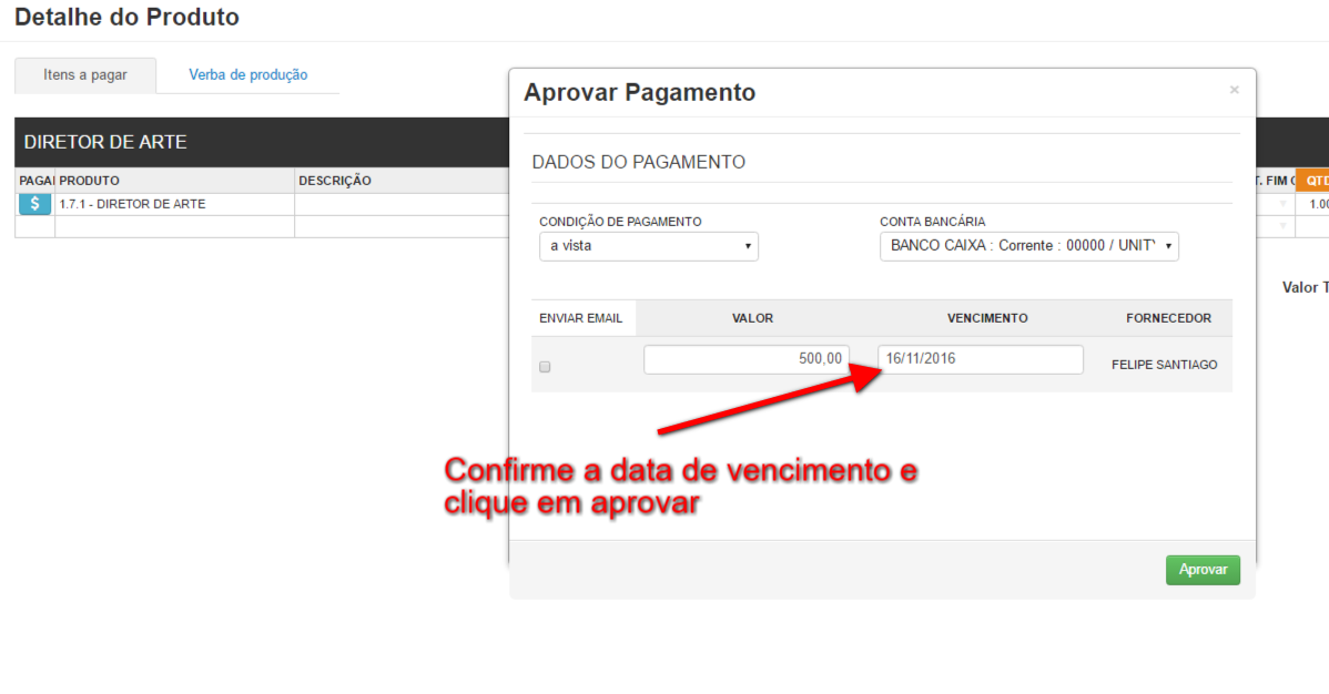 Veja abaixo como aprovar um pagamento de fornecedor do orçamento para o financeiro na versão detalhada do Jobb:
